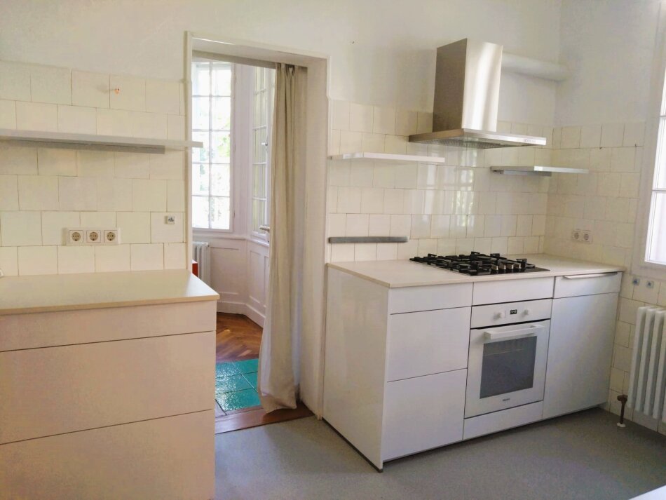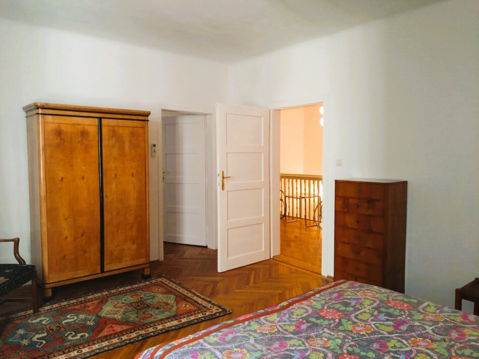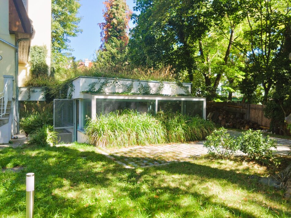 On the first floor, there are two magnificent rooms (one with a south-facing terrace overlooking the Pötzleinsdorfer Schlosspark), a study, and a spacious bathroom with windows.