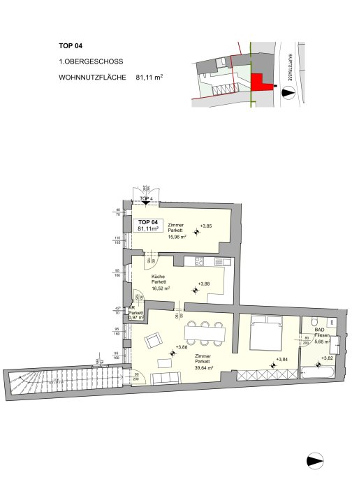 The former main floor on the upper floor will be handed over free of tenants and can be used immediately.