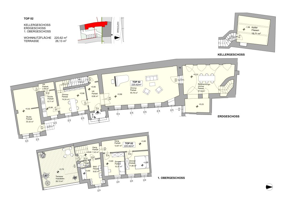 * two apartments on the upper floor, the former main floor, with a total of approximately 247m²