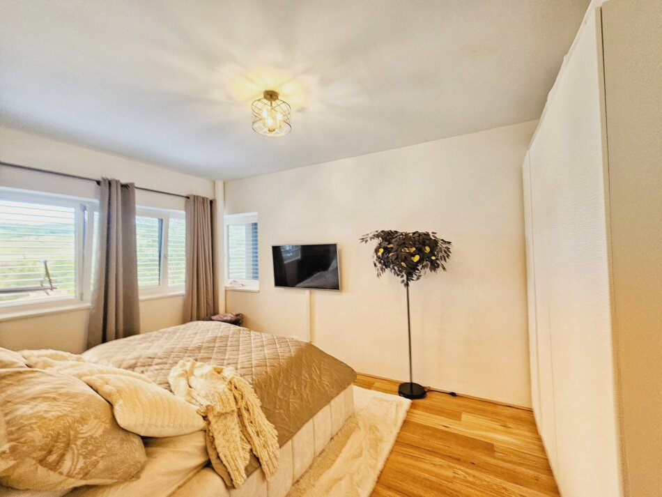On the 2nd floor, you will find a sunny bedroom with access to the large terrace with dream view, as well as a private bathroom.