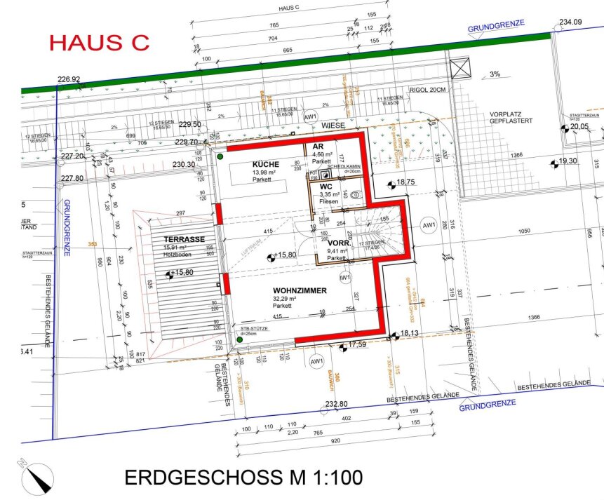 House C consists of approx. 125m² of living space, approx. 52m² of large terraces, and approx. 203m² of garden areas.