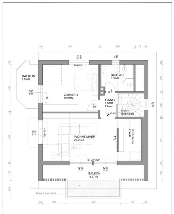2 large rooms with their own balconies and unobstructed distant views! Special highlight: further kitchen/bathroom connections prepared in the large attic room for exclusive fittings.