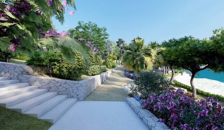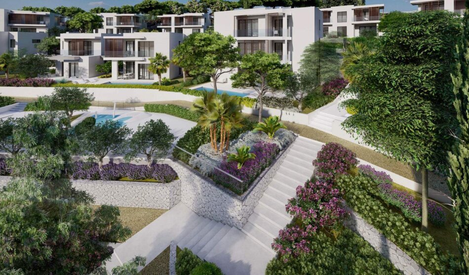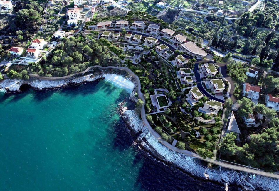 Dieses Fünf-Sterne-Ferienresort liegt direkt am Meer auf einer dalmatinischen Insel in der Nähe von Split und hat eine Baugenehmigung als Touristenresort. 16 hochwertige Ferienvillen mit Pool, Balkonen und Garagen und 4 Gästehäuser, die dem jeweiligen Hauptgebäude angeschlossen sind können SIE realisieren. Alle Natursteinfassaden-Villen haben drei Schlafzimmer, Meerblick und befinden sich in unmittelbarer Nähe der direkt zugänglichen Naturbadebucht. Alle Villen sind in mediterran angelegte Gärten eingebettet und mit Fußbodenheizung und -kühlung ausgestattet. Die Warmwasserversorgung erfolgt über Sonnenkollektoren und einer Wärmepumpe. Das parkähnliche Anwesen verfügt über Liegewiesen, Outdoor-Fitnessbereiche, eine Minigolfanlage und das Kinderbecken. Darüber hinaus gibt es auf dem Grundstück eine Reihe von allgemeinen Freizeiteinrichtungen, darunter: