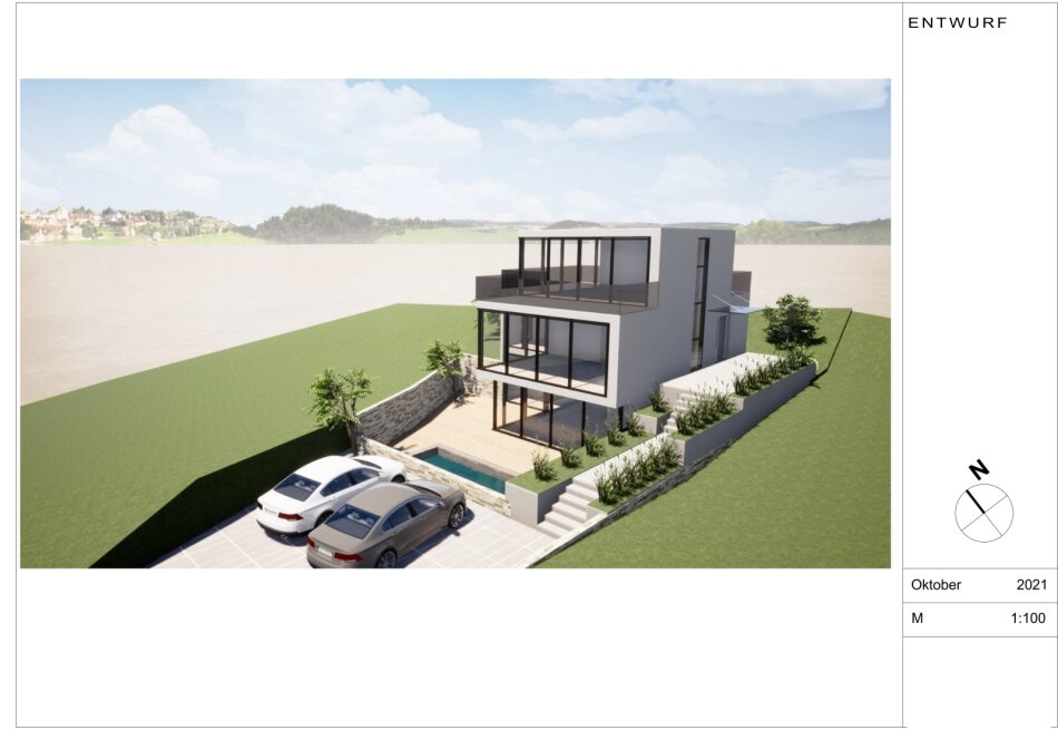 In einmaliger Grünlage am Waldrand, liegt dieser süd-west ausgerichtete Baugrund mit bewilligter Einreichplanung für eine moderne Einfamilienvilla.