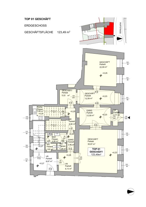 * zwei langfristig vermieteten Geschäftslokalen im Erdgeschoß mit insgesamt ca. 124m²