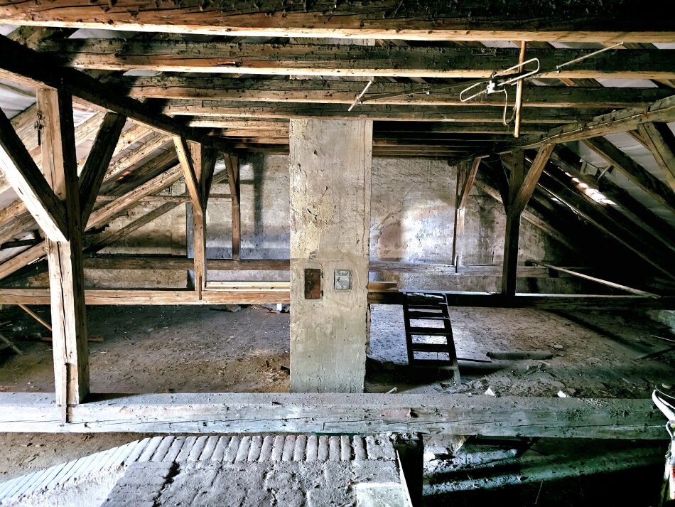 Der aus dem 18. Jahrhundert stammende Dachboden verfügt über eine bewilligte Baugenehmigung für zwei traumhafte Dachwohnungen mit insgesamt ca. 245m² Wohnflächen. Diese Wohnungen bieten einzigartiges Flair, dank der sichtbaren Holzelemente vom Dachstuhl und dem südseitigen Blick in den Garten der Liegenschaft.