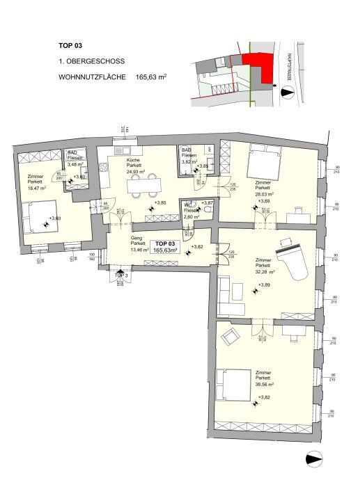 * zwei Wohnungen im Obergeschoß, die ehemalige Beletage, mit insgesamt ca. 247m²