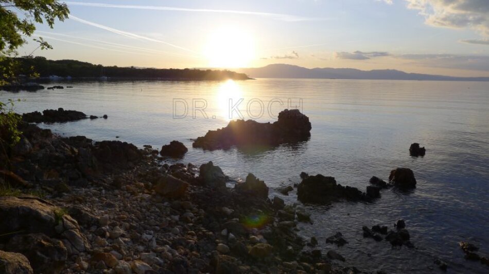 Dieses herrliche Juwel ist auf 3 Seiten von Grünland umgeben und nach Westen liegt das kristallklare Meer. Zum Ortszentrum mit einem hevorragenden Fischlokal kommen Sie über einen, auch mit Rad befahrbaren Weg und von Pinien beschatteten Weg in wenigen Minuten. Es führt oberhalb eine Sackgasse für Autos und am Meer ein Weg für Radfahrer vorbei. Es ist noch bewaldet und steigt leicht an ( ca. 10 -13m bis zur Baulinie) und bietet Ihnen daher einen unverbaubaren Blick auf die untergehende Sonne, die Insel Cres, Rijeka und Opatija, die am Abend eine herrliche beleuchtete Kulisse bieten. Die vorgelagerte Insel schützt vor zu hohen Wellen und sorgt für eine gute Strömungssituation, die immer herrlich klares Meerwasser heranführt.