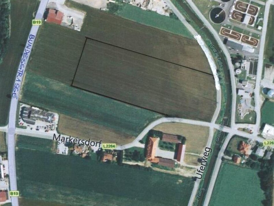 17.690 qm Industriegebiet + 981 qm Grünland-Grüngürtel-Hochwasserschutz, momentan in der Natur noch Acker.