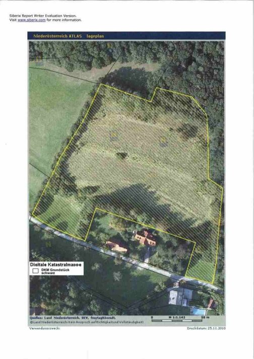 Ein angrenzender EBENER Grund, der leicht zu bebauen wäre, mit 4.819 qm, der an einem Bacherl liegt wird unter Umständen gegen Gebot verkauft. Als Preisuntergrenze gelten € 35 /qm oder 250 € Pacht p.m..