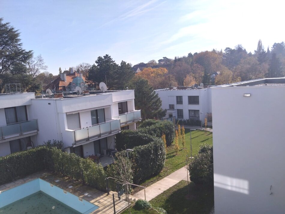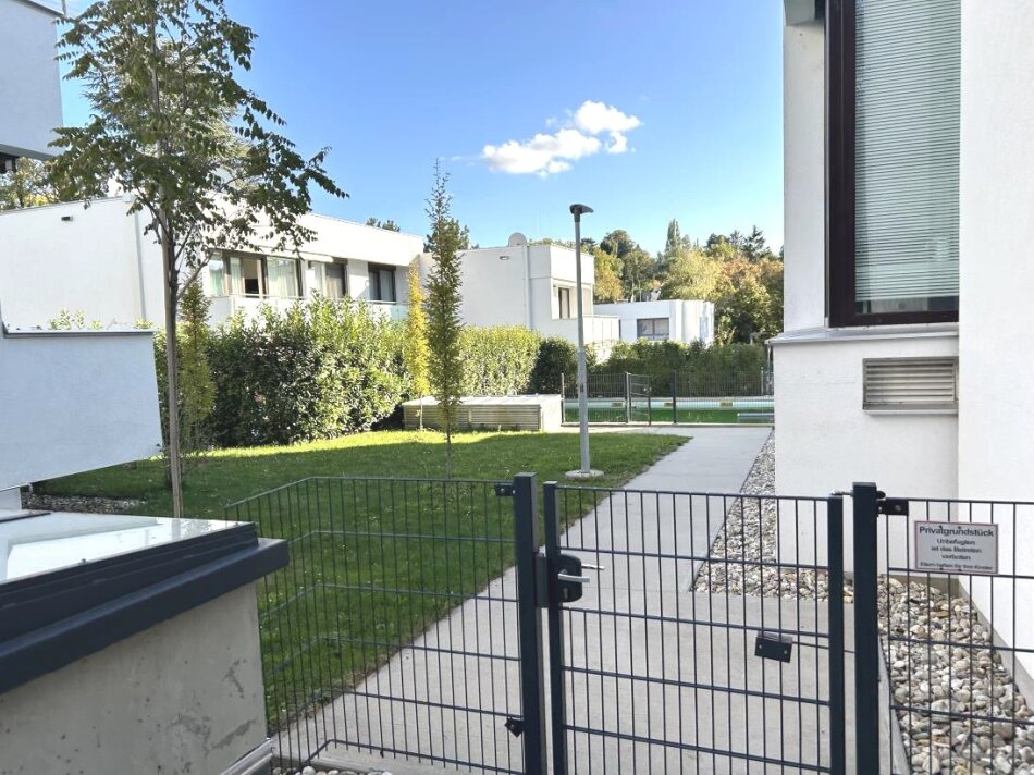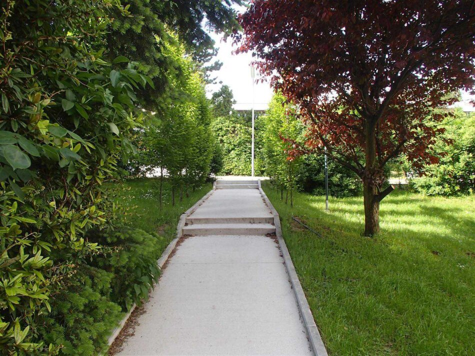 Der Hauscharakter wird durch die Tatsache betont, dass sich die Wohnung in einem beinahe freistehenden Haus mit nur zwei separaten Wohneinheiten befindet. Die gesamte Anlage wurde Anfang der Siebzigerjahre nach den Plänen des Architekten Carl Appel gebaut und 2019 revitalisiert.