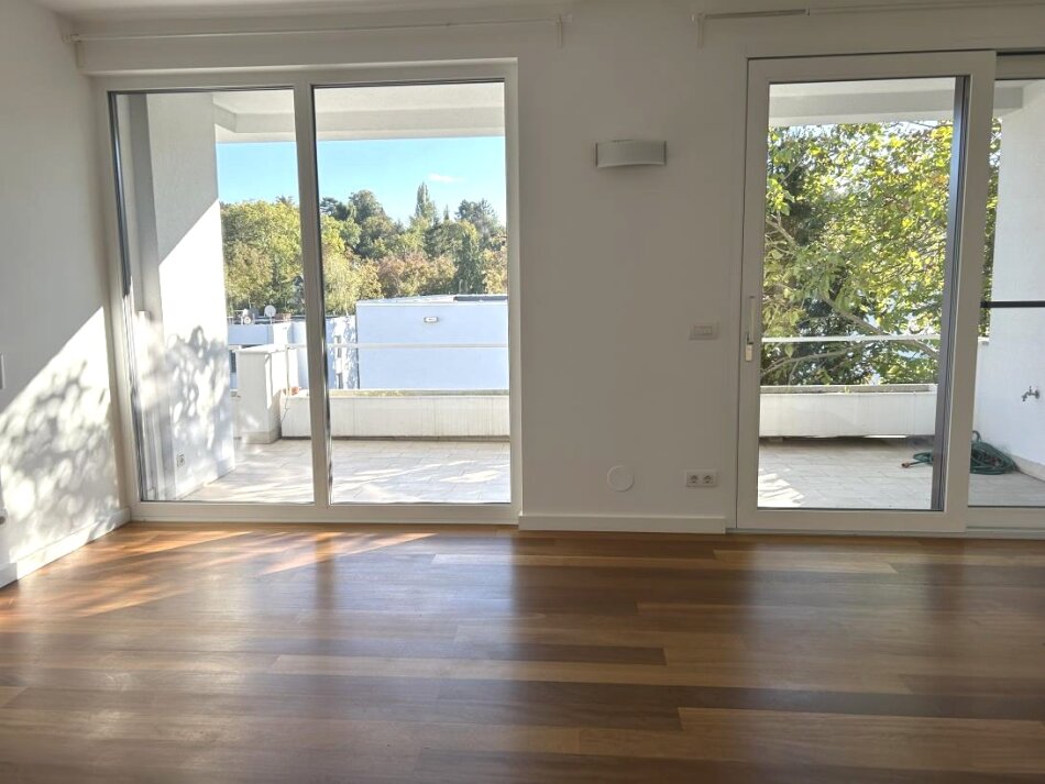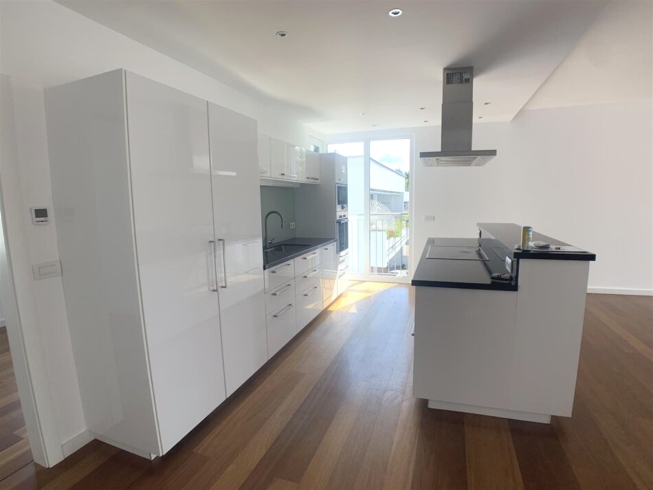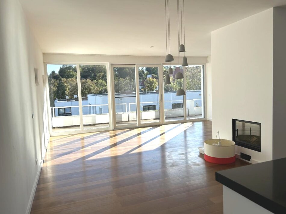 Der traumhafte 65 m² südöstlich ausgerichtete Wohnsalon (mit Küche und Essplatz) hat einen direkten Ausgang auf die Terrasse.