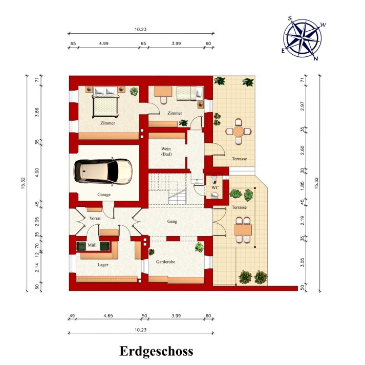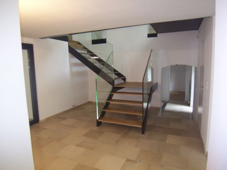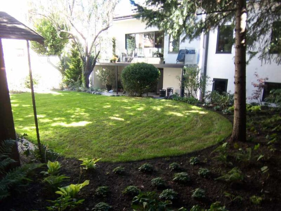 und abteilbarer 2-Zimmer-Wohnung mit 73 qm, 2 Terrassen mit zusammen 49 qm, Garage und Keller im Gartengeschoss. Gut geeignet für Gäste, Personal oder Home Office.