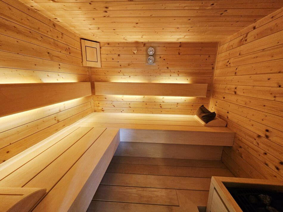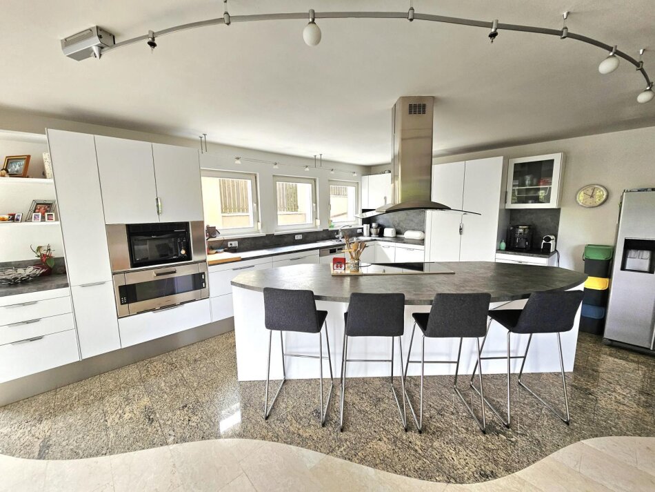 Im Untergeschoss erwartet Sie ein beeindruckender Wohn-Küchenbereich von über 60 m². Die moderne Küche mit großzügiger Kücheninsel und angrenzendem Essbereich ist ideal, um kulinarische Köstlichkeiten zu kreieren und Gäste stilvoll zu bewirten. Der gemütliche Wohnbereich, umgeben von drei Fensterfronten, bietet einen atemberaubenden Blick auf den Wienerwald. Auf der großzügigen Terrasse von etwa 76 m² können Sie das ganze Jahr über die malerische Umgebung genießen. Ein Gästezimmer,aktuell als Wellnessbereich mit moderner Sauna genutzt, ein Gäste-WC mit Dusche in elegantem Marmor und ein praktischer Abstellraum runden diese Ebene ab.