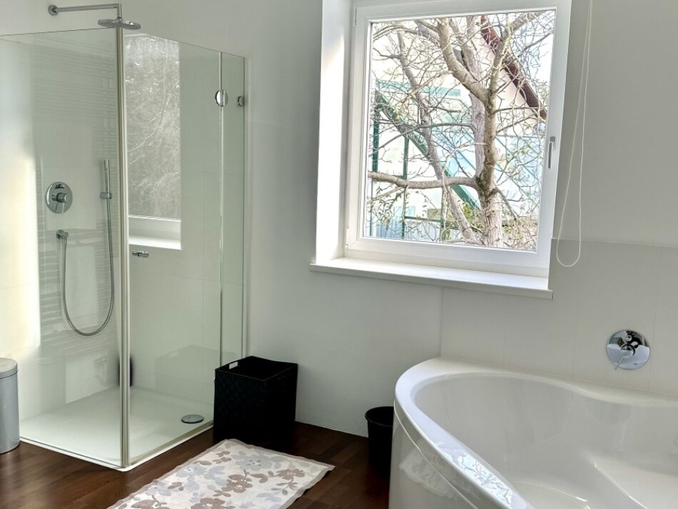 Upper floor: The upper floor houses three bright bedrooms that offer plenty of space for family and guests. The high-quality bathroom is modernly designed and invites relaxation. Additionally, there are generous wardrobe spaces as well as a separate closet room that provides additional storage space.