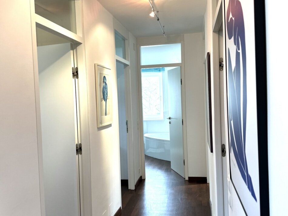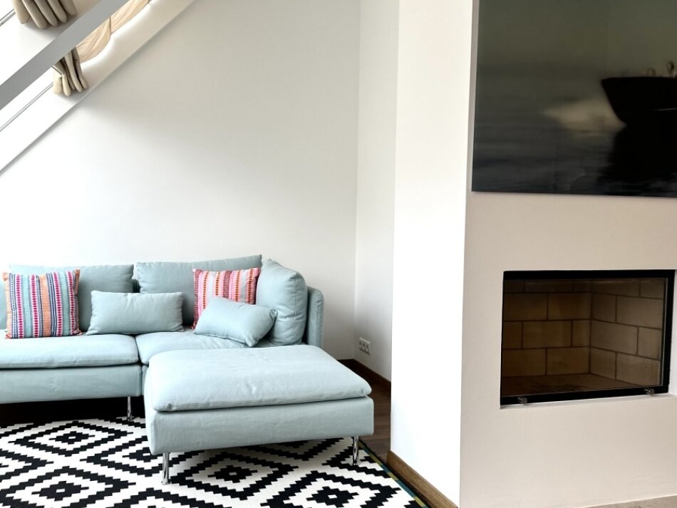 Attic: The spacious master bedroom in the attic is a real highlight. It features its own fireplace, an elegant bathroom, and a terrace where you can enjoy sunny hours outdoors. Here you will find your private retreat in a stylish ambiance.